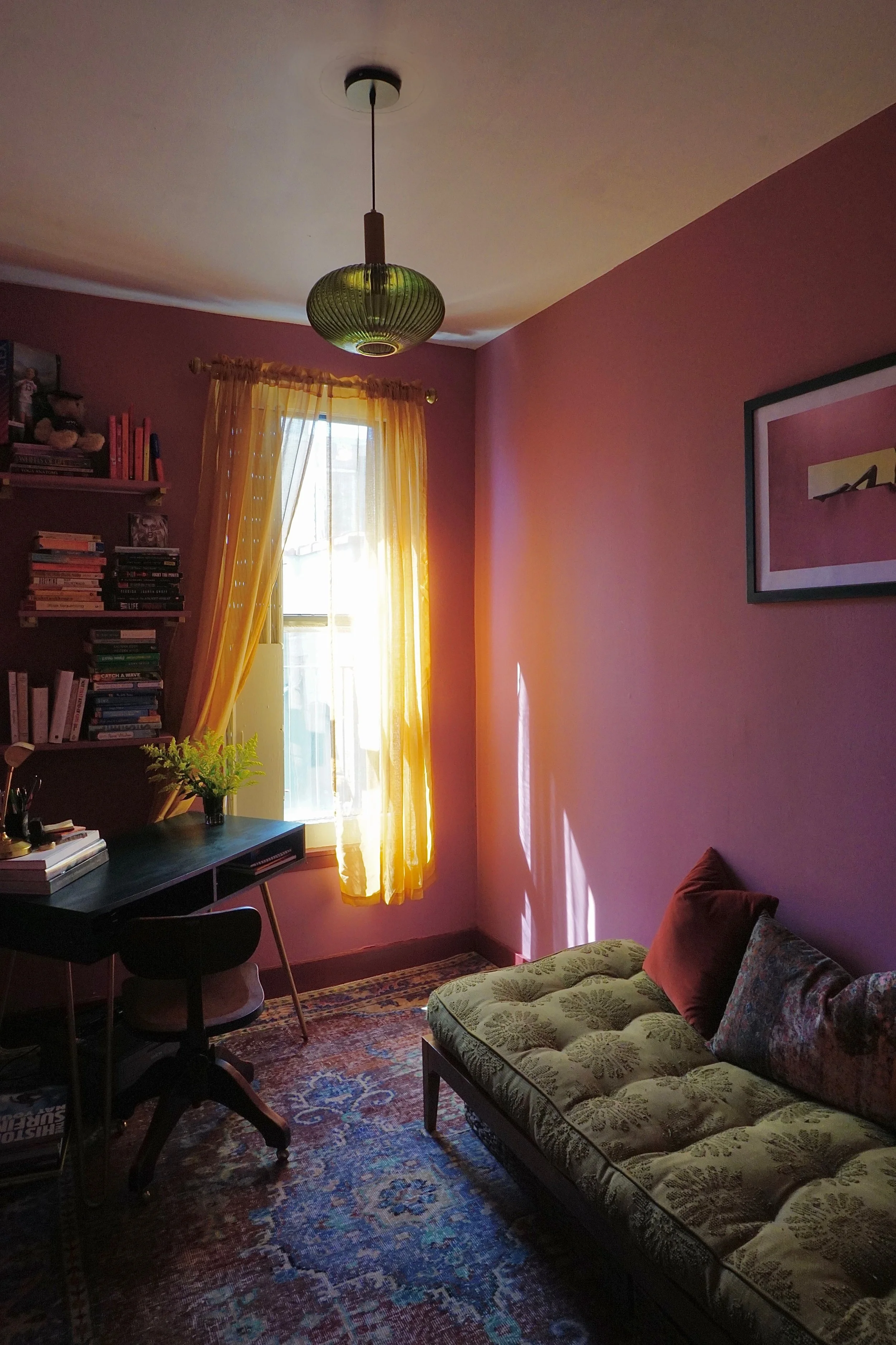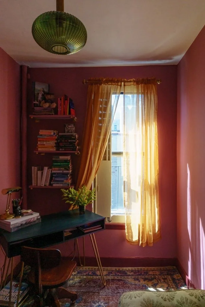 This bedroom and office remodel was for client Robbin in lower east village, Manhattan. We focused on creating a bedroom space that was colorful and rich toned but still felt light and airy. The office’s focus was to create both a work space that doubled as a guest room when friends and family visit. Below are before and after images.